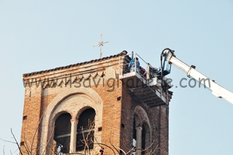 Cavallermaggiore. Dopo mesi di discussioni, martedì il nido delle cicogne che da qualche anno abitano sulla torre civica di Cavallermaggiore è stato spostato. Ai volatili è stato consegnato un nuovo alloggio “chiavi in mano” sul campanile del santuario. Ora potranno “andare liberamente in bagno” visto che lo spostamento è stato deciso per motivi igienici: dalla torre, i “bisognini” scendevano nel dehors di una pizzeria.Anche questi ultimi giorni sono stati caratterizzati dalle polemiche, con un batti e ribatti tra il sindaco e un gruppo di persone contrarie alla decisione. Servizi alle pagine 13 e 10.