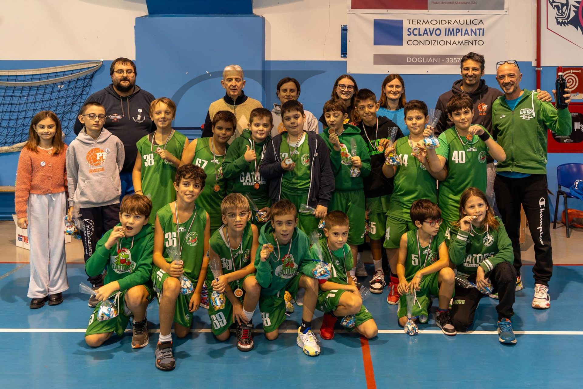 Sabato 9 novembre i giovani Alligatori dell'Under 13 dei Gators hanno letteralmente dominato il parquet di casa, infliggendo una sconfitta all'Olimpo Alba con un punteggio che parla da se'. Una prestazione molto positiva che ha lasciato di stucco avversari e pubblico. Dalla prima palla a due, gli Alligatori hanno imposto un ritmo forsennato, mettendo in difficoltà gli avversari in ogni zona del campo. La squadra ha dimostrato una determinazione e una coesione fuori dal comune, con tutti i giocatori che hanno offerto un contributo fondamentale alla vittoria, tranne lo sfortunato Pali che si è infortunato nelle prime azioni di gioco. Dopo un parziale in avvio di gare, Alba prende le misure e cerca di contrastare l'offensiva Gators, ma la differenza fisica e tecnica dei padroni di casa non ne risente nel gioco e tutti i componenti del team biancoverde evidenziano importanti miglioramenti. Lo staff, visibilmente soddisfatto, ha commentato così il successo: "Siamo estremamente orgogliosi dei nostri ragazzi. Oggi hanno giocato una partita perfetta, dimostrando di essere una squadra davvero tosta. Questa vittoria è il frutto di tanto lavoro e dedizione degli anni precedenti e di questi primi mesi trascorsi insieme, e ci proietta verso gli obiettivi stagionali".