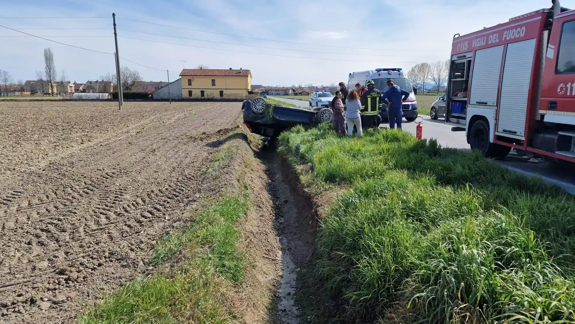 Un'auto si è ribaltata nel fosso sulla strada per Monasterolo